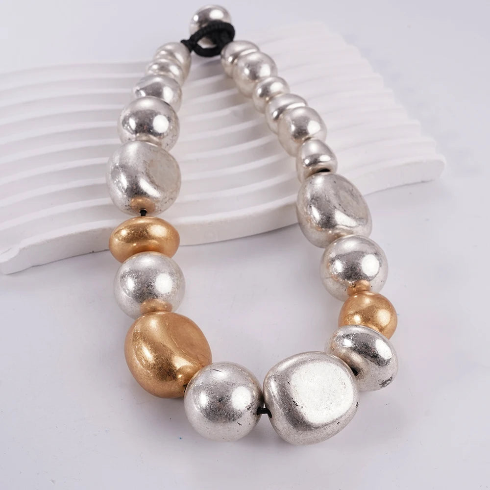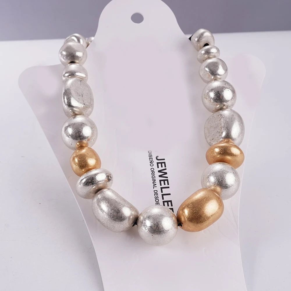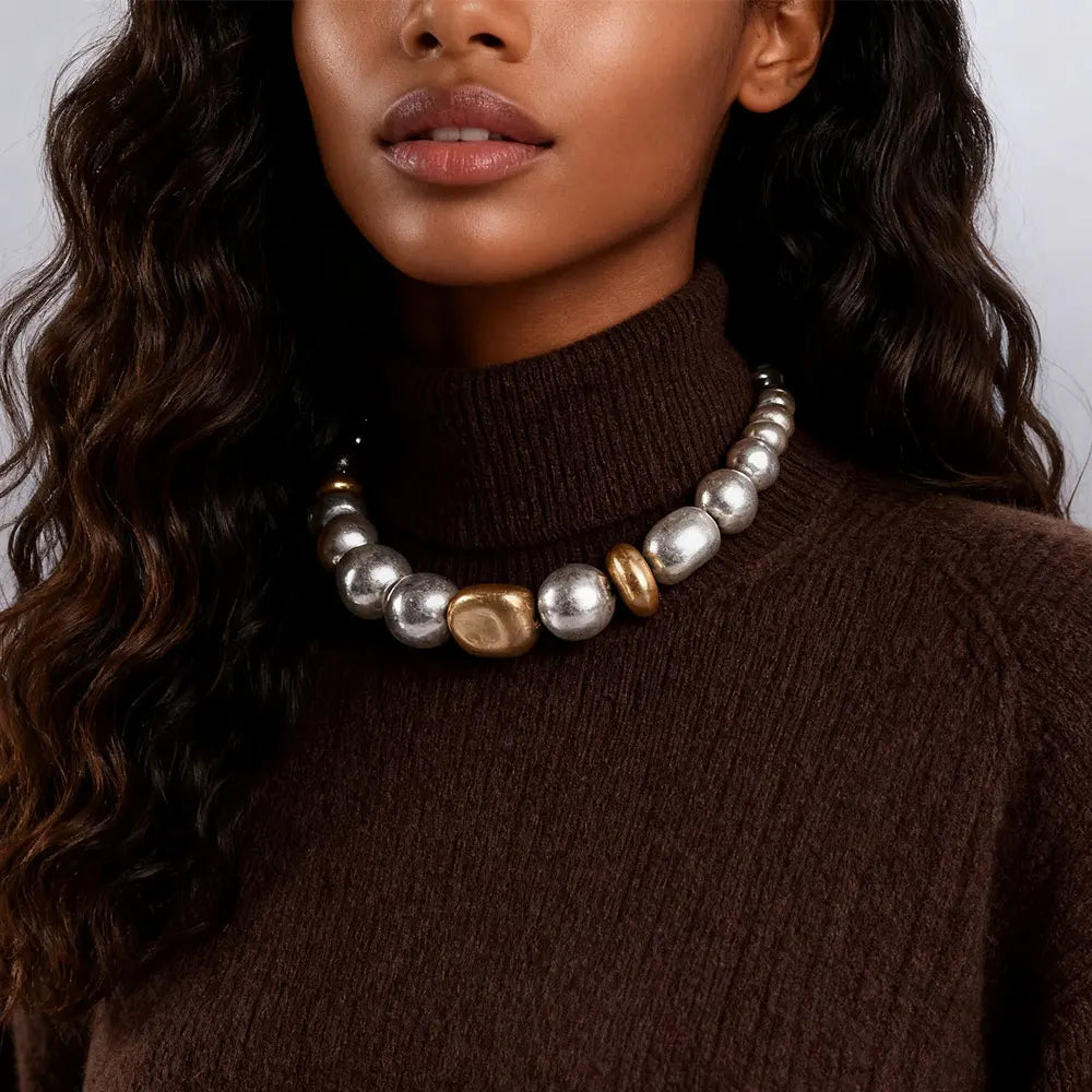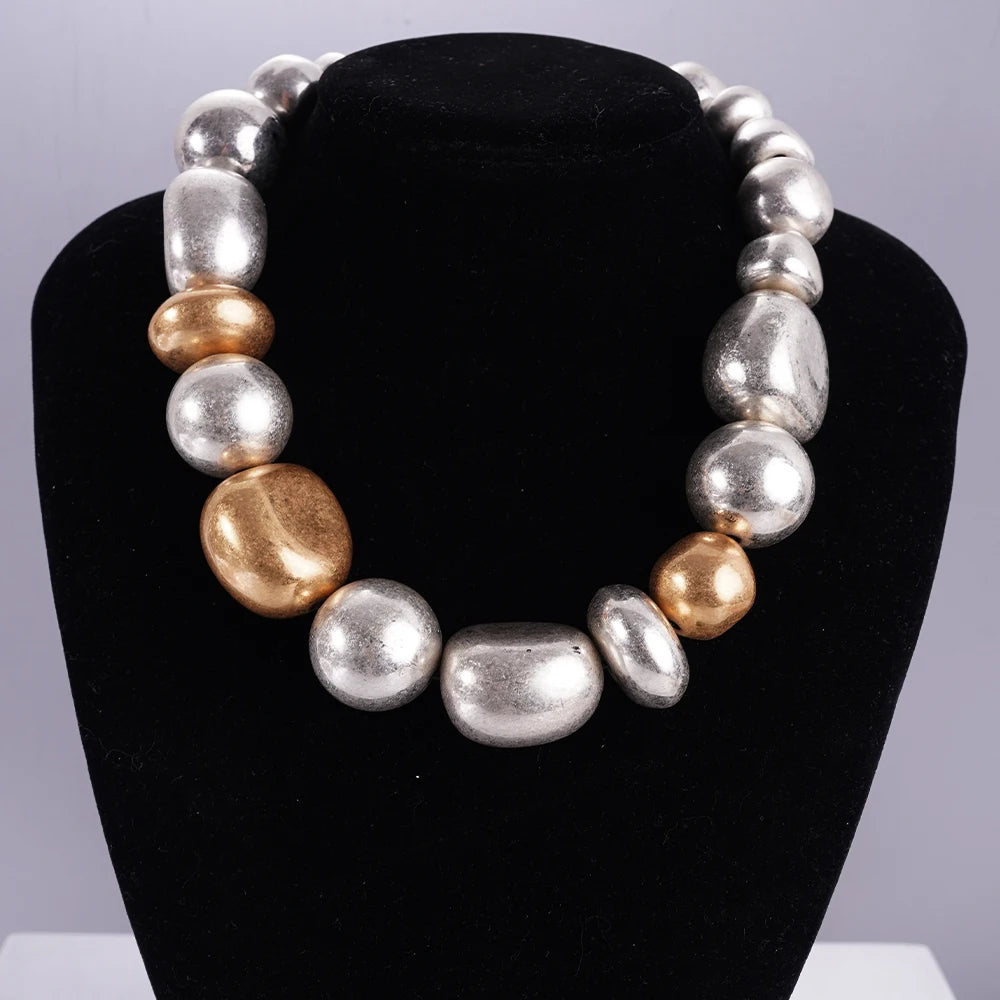 Statement Chunky Beaded Choker Necklace in Silver & Gold Tone Chunky Style for Fashion Enthusiasts, Ideal for Elevating Outfit