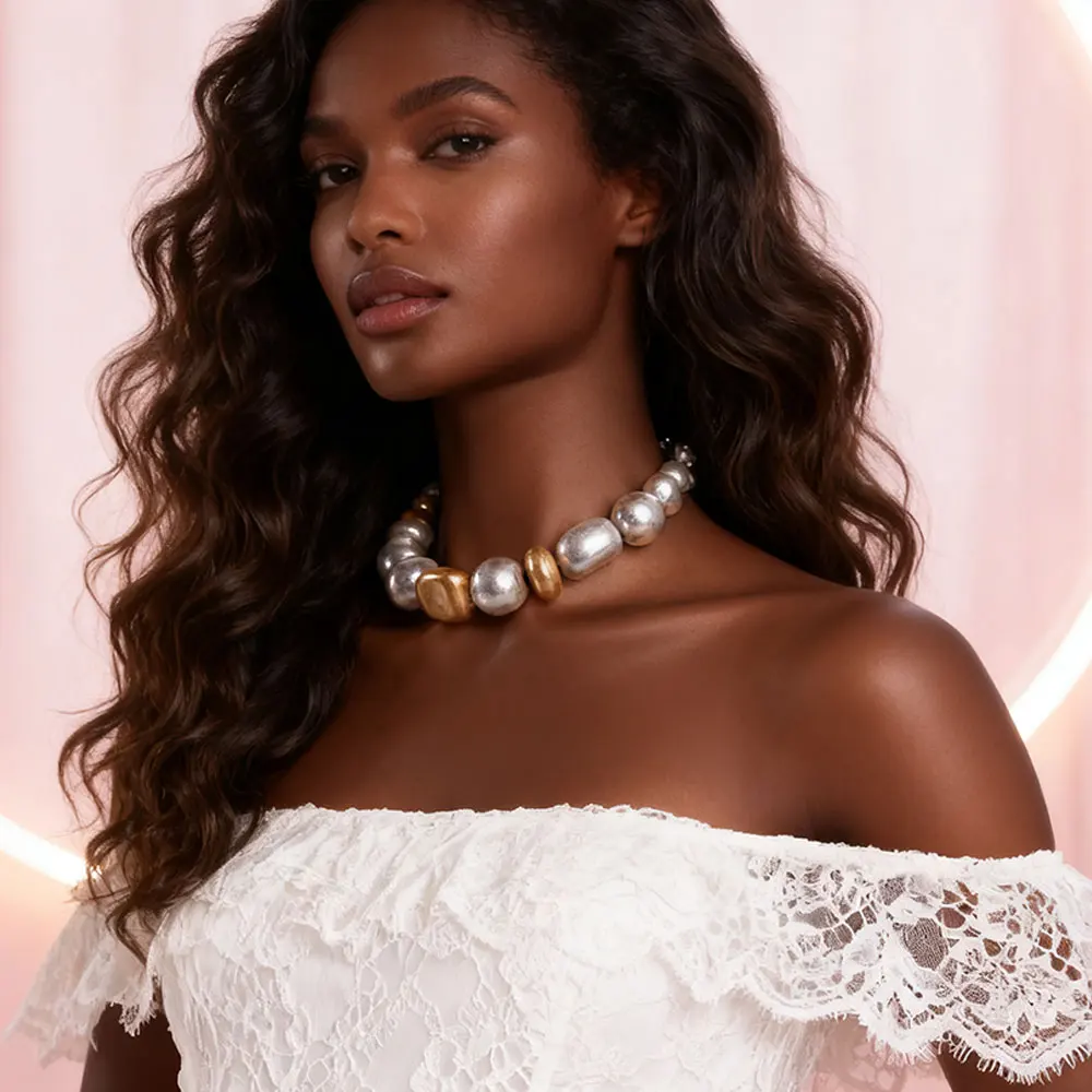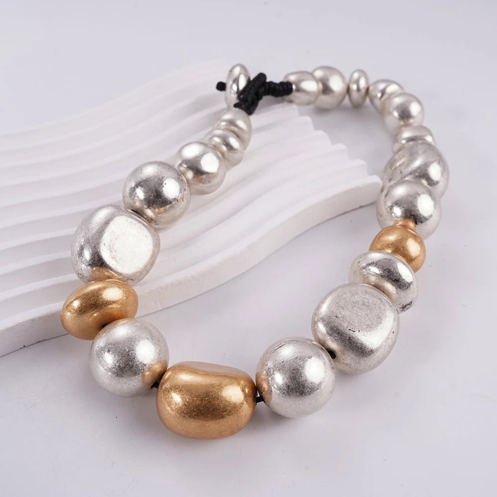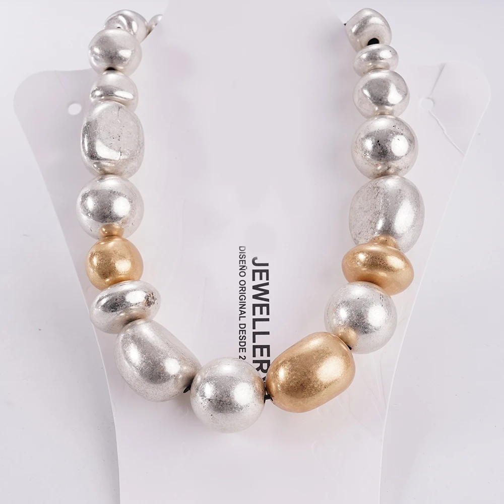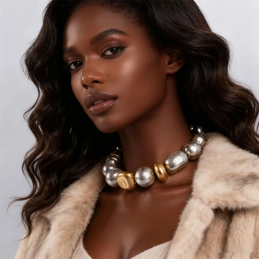 Statement Chunky Beaded Choker Necklace in Silver & Gold Tone Chunky Style for Fashion Enthusiasts, Ideal for Elevating Outfit
