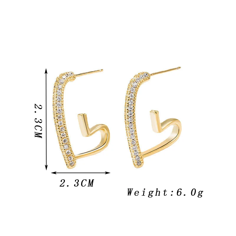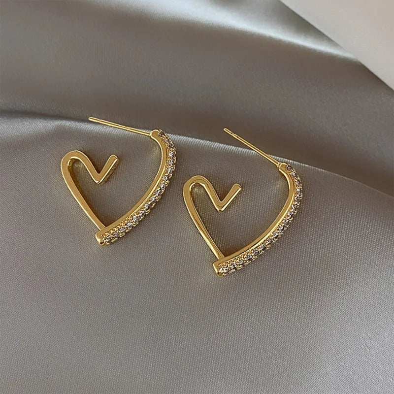 Crystal Heart Drop Earrings for Women New Fashion Irregular Geometry Metal Open Love Earrings Cute Romantic Statement Jewelry