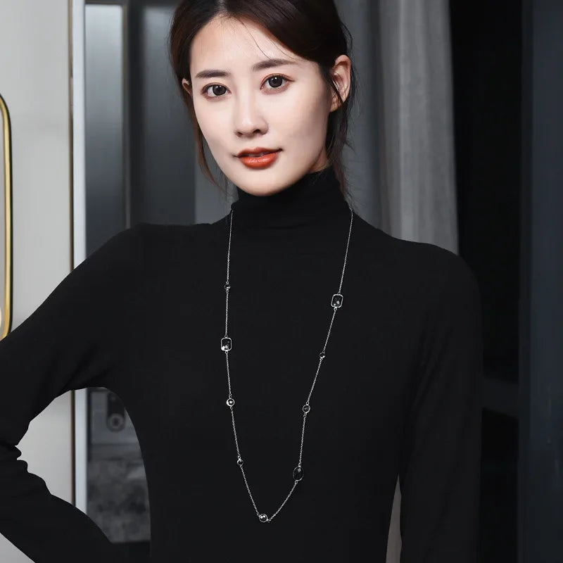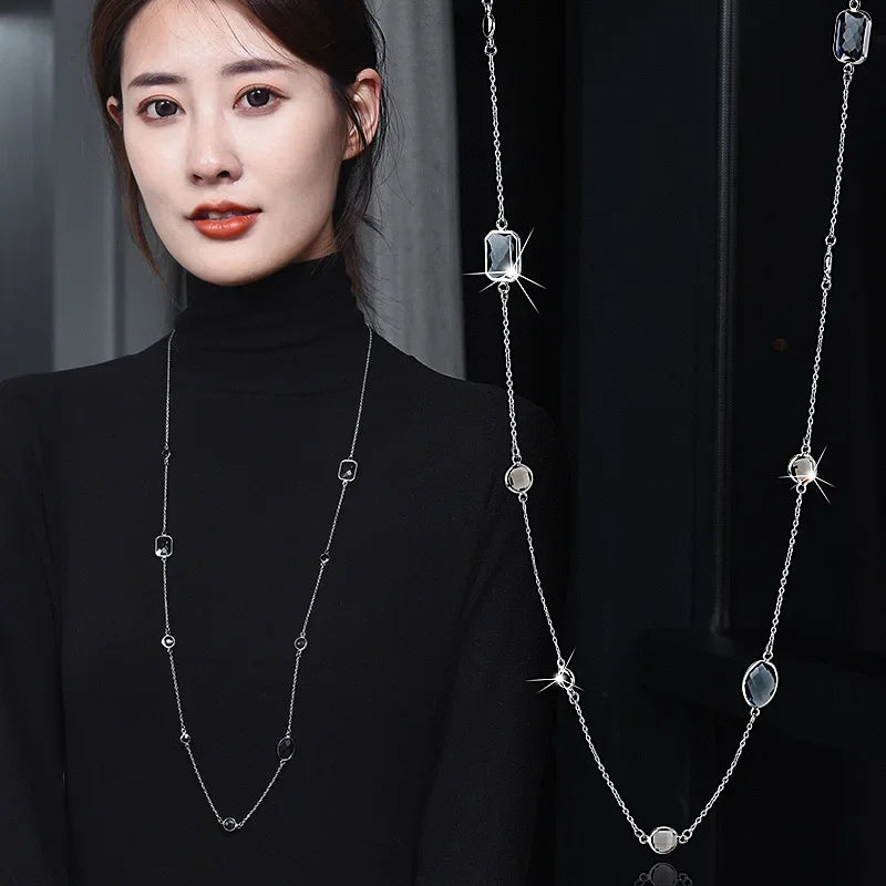 Minimalist Bohemia Long Pendant Necklace for Women Crystal Oval Square Geometric Long Chain Fashion Jewelry Statement Girl Gift