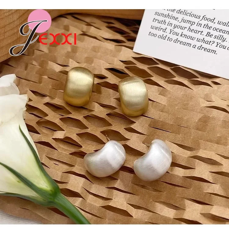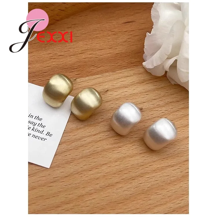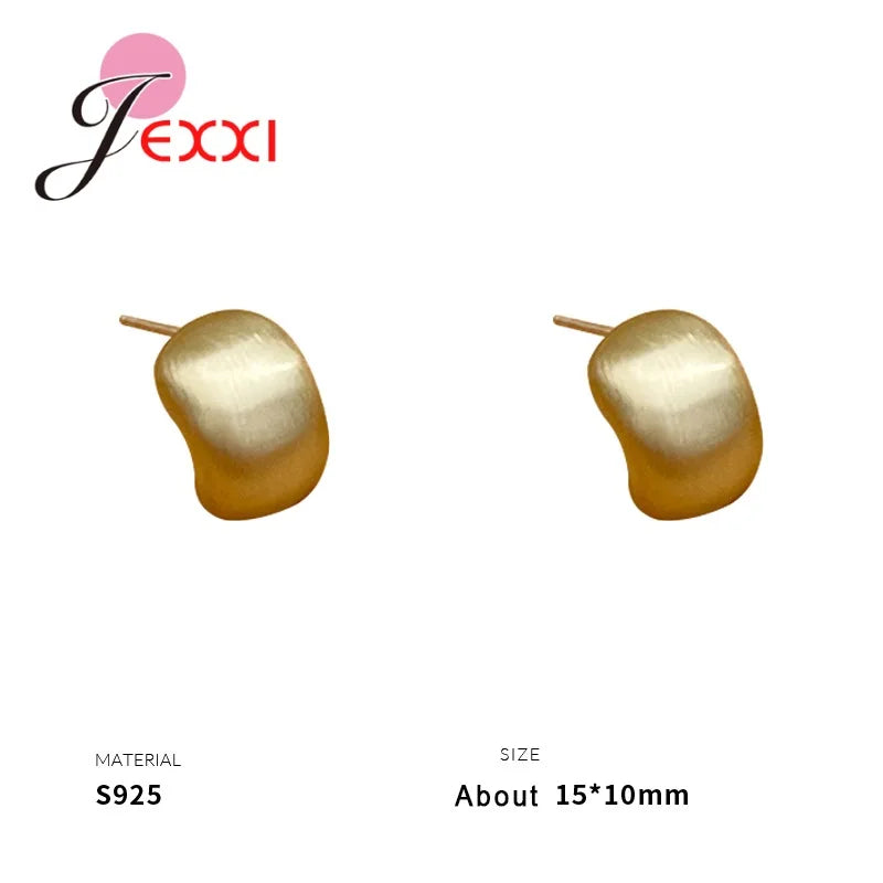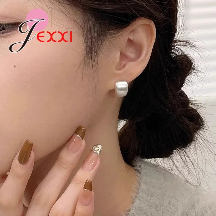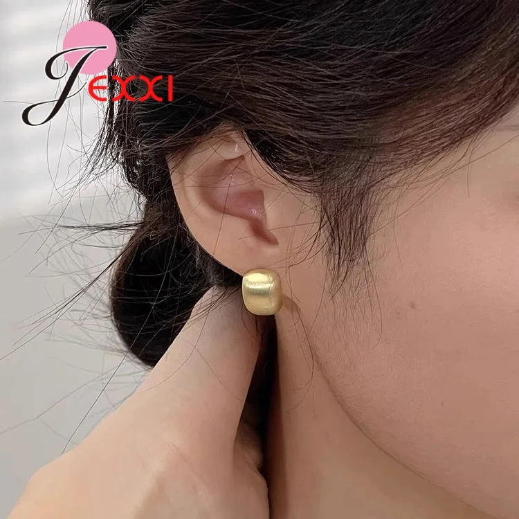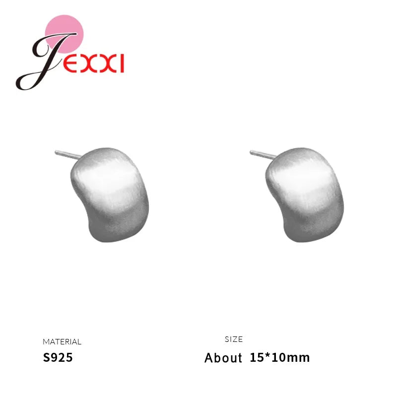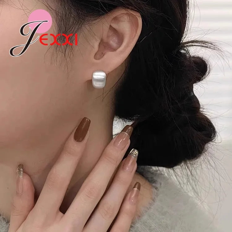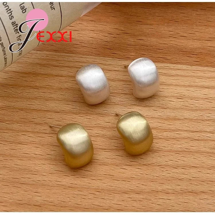 Stud Earrings for Women Girls Fine S925 Sterling Silver Simple Metallic OL Stylish Geometric Ear Oranments Korea Jewelry