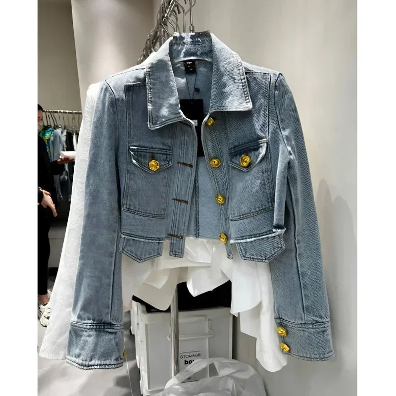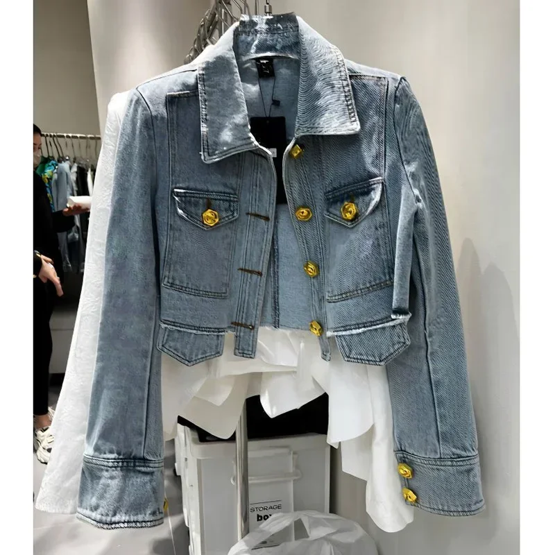 2024 New Denim Jacket for Women Slim Single Breasted Long Sleeve Short Outerwear Coat Denim Jacket Women Coat Coats