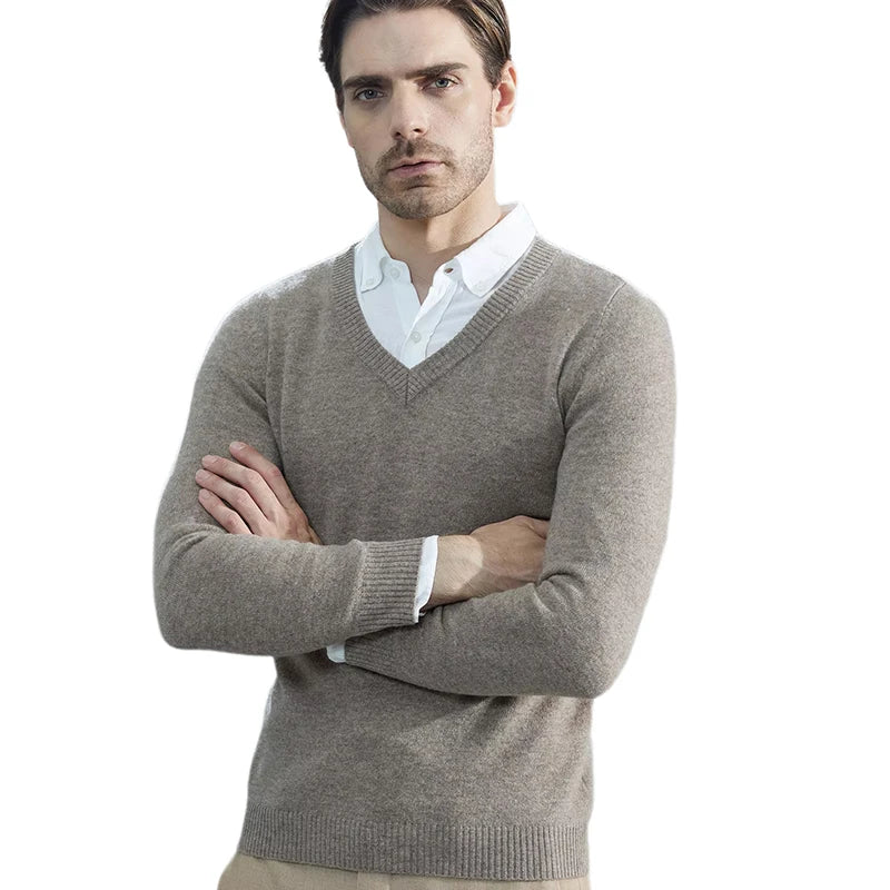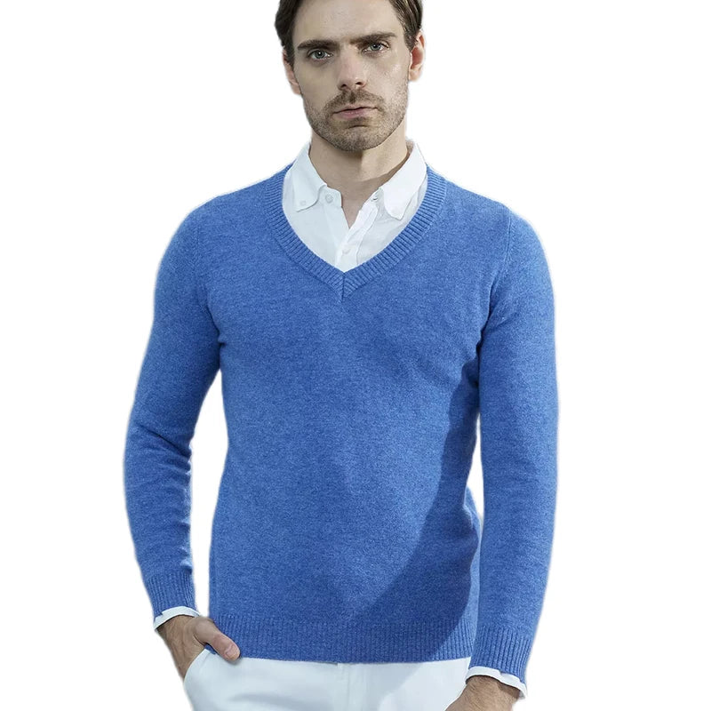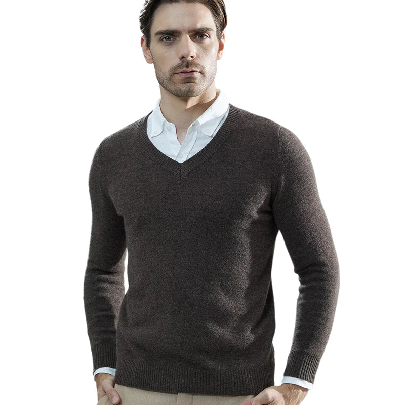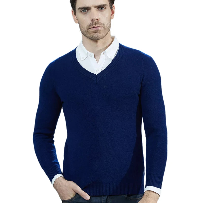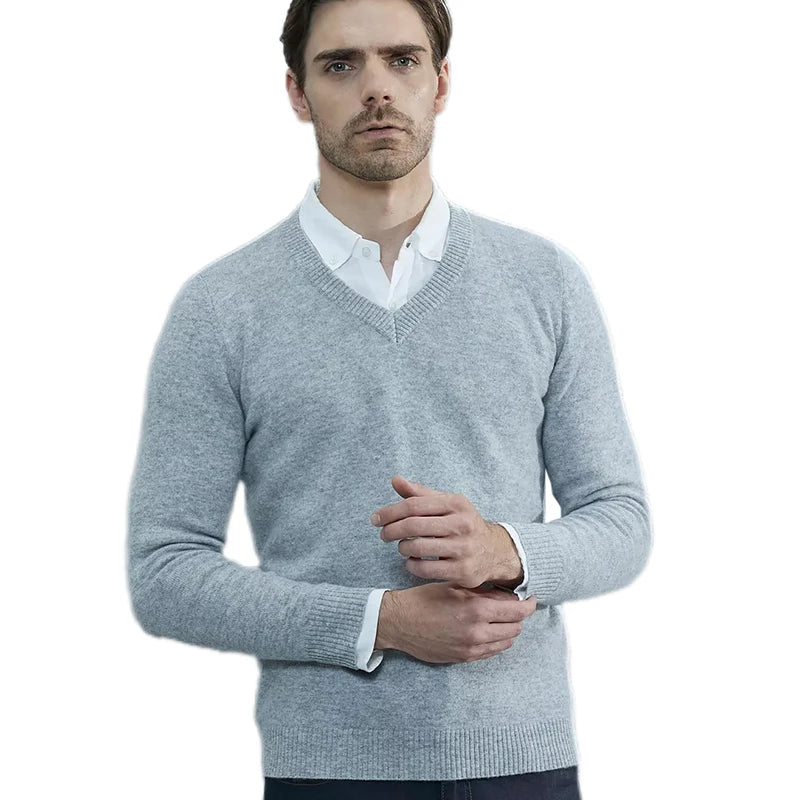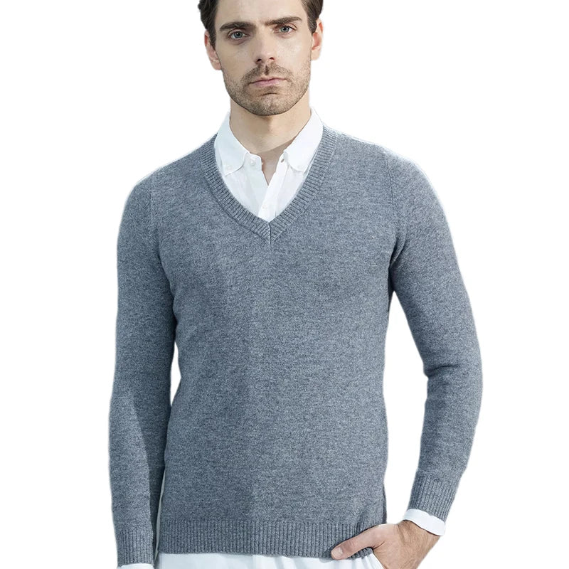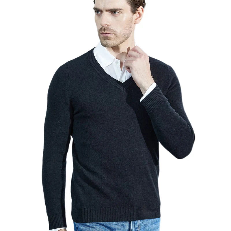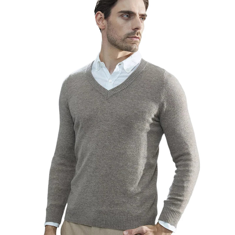 Cashmere Sweater Men Knitted Sweaters 100% Pure Merino Wool V-Neck Long-Sleeve Thick Pullover Winter Autumn Male Jumper Clothing