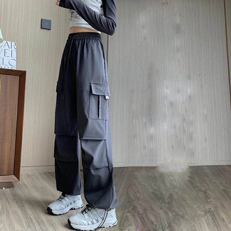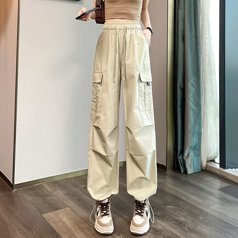 Fashion Women Joggers Pants Casual Female Chic Straight Cargo Pants Elastic High Waist Streetwear Slim Trousers Summer Thin